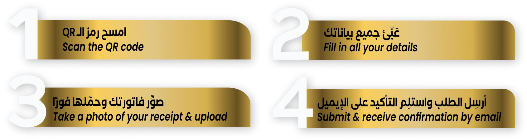 عند شراء أي من منتجات ديليسيو بقيمة 20 ريال قطري أو أكثر، تحصل على فرصة لربح إحدى الجوائز التالية: